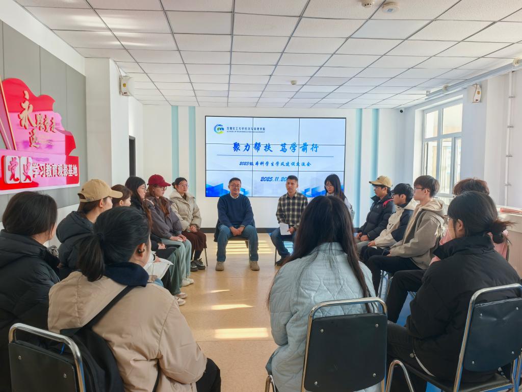 为全面落实立德树人根本任务,切实加强学风建设,引导同学们端正学习态度,明确成长方向,11月20日,经济与管理学院在生活城“一站式”学生社区成功举办“聚力帮扶,笃学前行”——2023级本科学生学风建设交流会。经济与管理学院副院长刘铁民、2023级学生辅导员王怀出席交流会,现场与学习困难学生开展暖心交流。