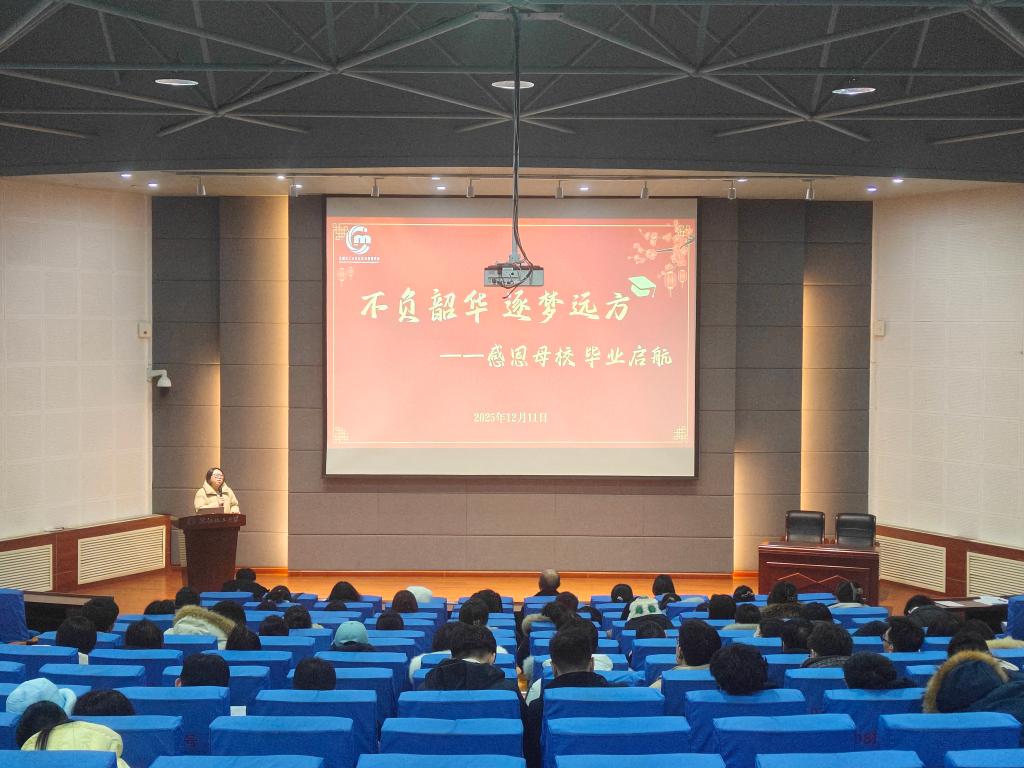 党委副书记关婷聚焦毕业生的职业发展与人生规划展开分享。她结合学院往届优秀毕业生的职业案例,从职场心态调适、角色转换适应、人际关系处理等方面为同学们提供实用建议,鼓励大家既要怀揣“直挂云帆济沧海”的豪情壮志,也要保持“脚踏实地行稳致远”的务实作风,在新的人生赛道上找准定位、深耕细作。