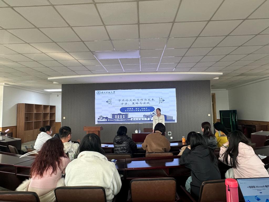 为提升研究生学术论文撰写质量与期刊投稿命中率,扎实推进学位论文指导工作,经济与管理学院特邀东北财经大学杂志社副社长徐雅雯博士(副编审)来院,举办学术论文写作与发表专题指导讲座。学院院长王蓉、副院长刘铁民及全体专任教师、部分研究生代表参加活动,讲座由刘铁民副院长主持。本次讲座紧扣经管学科研究生论文写作与发表实际需求,设置专题分享、论文指导、现场答疑三大环节,内容专业务实,针对性强。