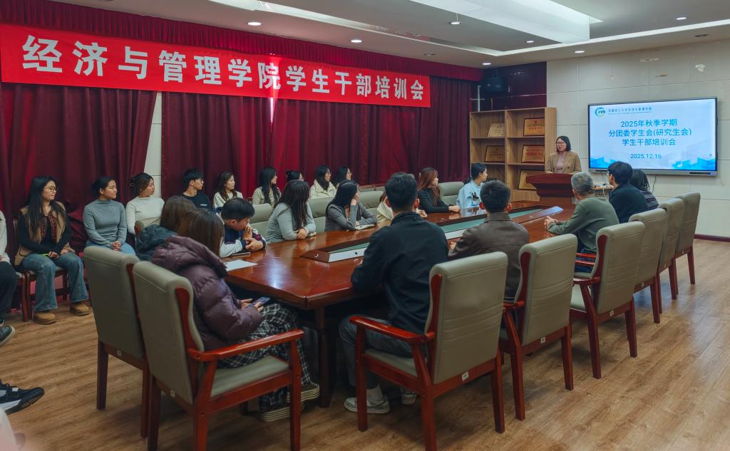 为强化学生干部责任意识、提升综合素养,夯实工作根基,12月16日,经济与管理学院在通明楼329会议室召开了以“淬炼能力强担当,凝心聚力启新程”为主题的2025年秋季学期学生会(研究生会)学生干部培训会。分团委书记王怀主持会议,学院党委副书记关婷受邀开展专题培训,全体学生干部参会。